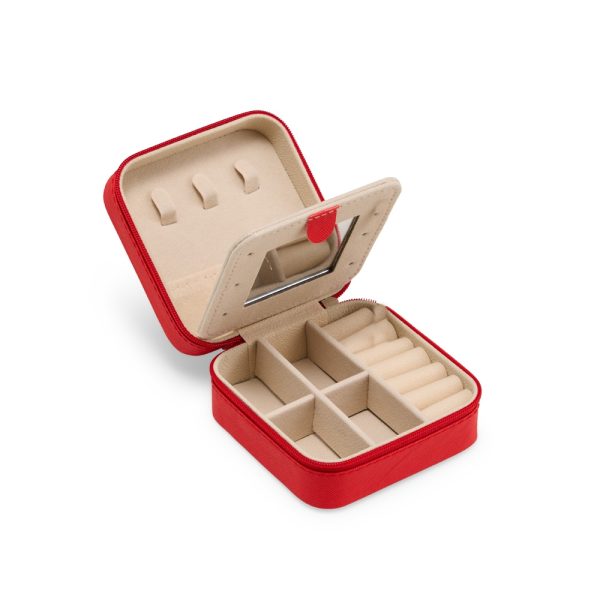 O item perfeito para não esquecer onde estão seus acessórios na hora de sair de casa. Feito em couro sintético, possui revestimento aveludado. Na sua parte interna, possui divisórias para acomodar cada item, como anéis, brincos, pulseiras e colares, seu espelho, além de possibilitar a oportunidade de dar aquela olhada no visual, também é uma divisória entre um compartimento e outro.