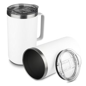 Caneca térmica com alça em madeira
