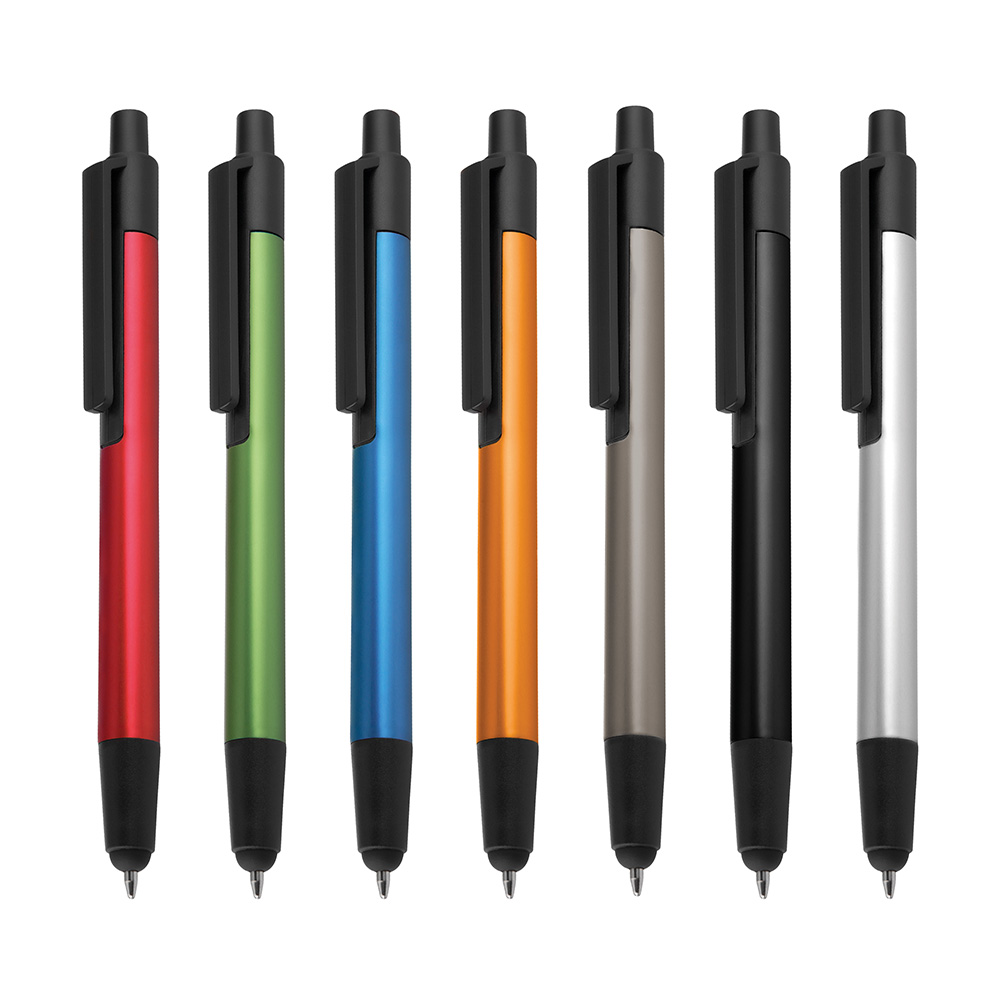 Caneta esferográfica em metal com ponta touch escrita em azul