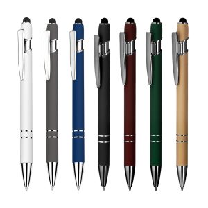 Conjunto composto por chaveiro pé de galinha em alumínio reciclado e caneta de acionamento em alumínio reciclado, com régua no…