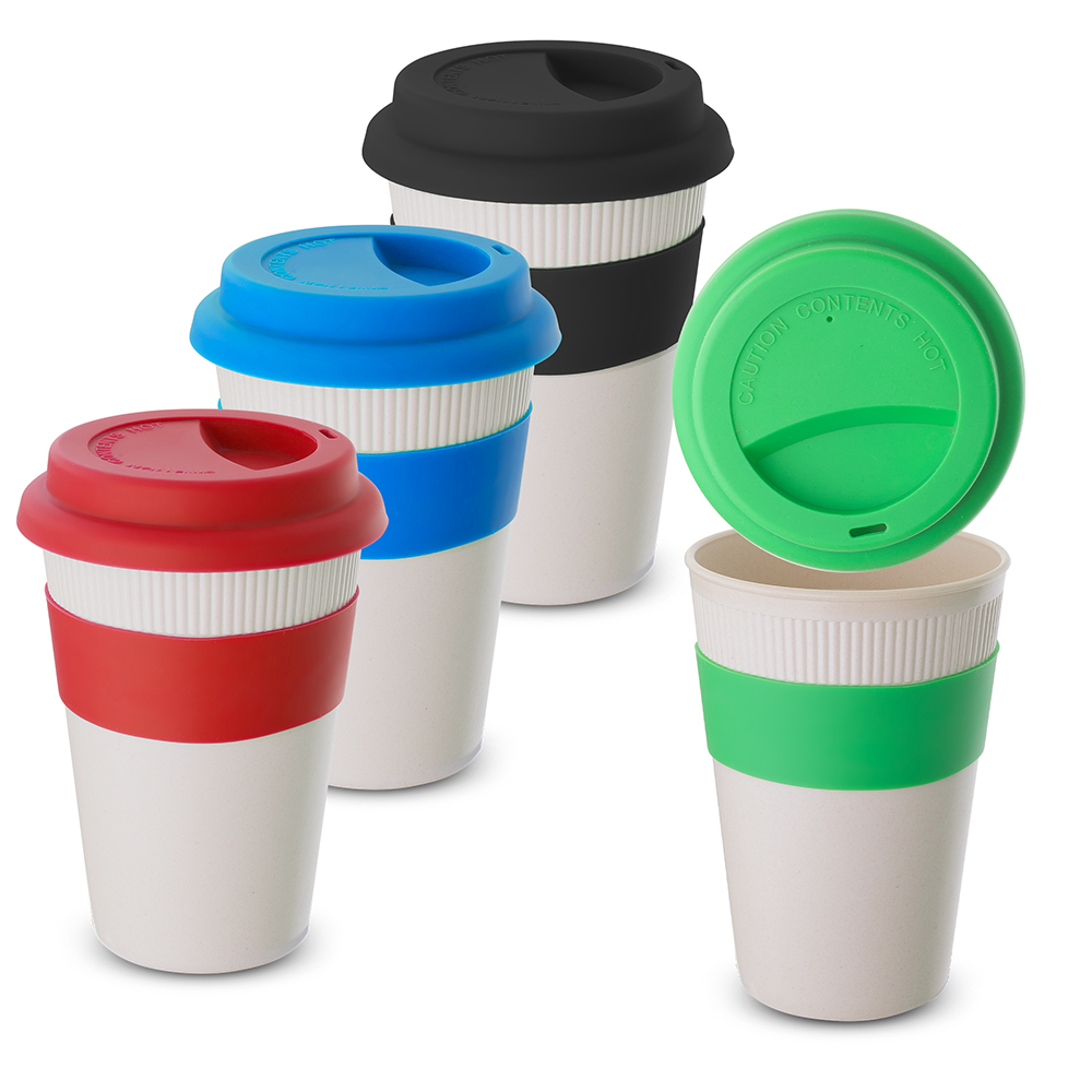 Copo em fibra de bambu com pegador e tampa em silicone, capacidade 450ml. Composição: 30% de fibra de bambu e…