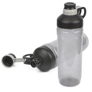 Garrafa em alumínio com capacidade de 750ml. Tampa de plástico rosqueável com mosquetão colorido. Pintura metálica.