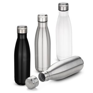 Garrafa térmica em aço inox com parede dupla isolada a vácuo, com capacidade até 450ml. Tampa rosqueável com anel de…