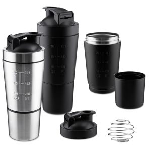 Garrafa térmica em aço inox com parede dupla isolada a vácuo, com capacidade até 450ml. Tampa rosqueável com anel de…