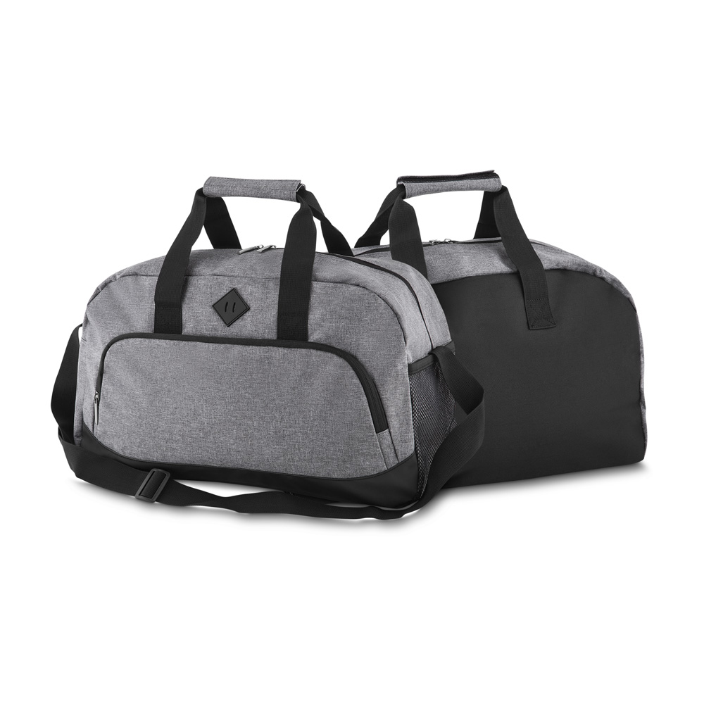 Mala esportiva em poliéster 300D mescla com alça de mão e ombro. Bolso frontal e lateral. 35% OFF NA PLAQUINHA! …